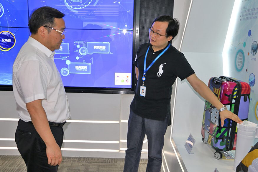 星空官网智能总裁龙飞为陈小华区长介绍公司产品