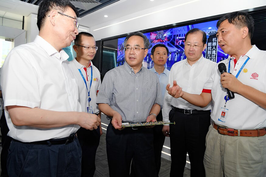 2017729日上午,中央政治局委员、广东省委书记胡春华在广东省委副书记、广州市委书记任学峰、广东省委秘书长江凌、副省长黄宁生等领导陪同下赴广州市企业调研,星空官网(集团)智能科技有限公司官网作为被调研企业之一,公司董事长孙超向胡春华书记介绍了公司的发展历程,研发中心总经理朱勇杰介绍了公司自主研发的专用高性能计算平台这一核心技术的研发历程、国内外的行业地位、发展前景等。