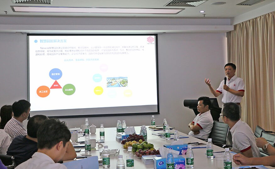 针对当前全国各地大力推进智慧城市建设这一浪潮,朱勇杰还向各位领导介绍了星空官网智能研发的智慧建设解决方案,着重阐述了其中的智慧城市解决方案,指出该方案以“互联网+”促进电子政务全面转型,利用创新2.0驱动智慧城市转型升级,发展以“互联网+”为核心要素的智慧产业,打造智慧高效的网络安全保障体系,建设统一的智慧城市信息资源体系。