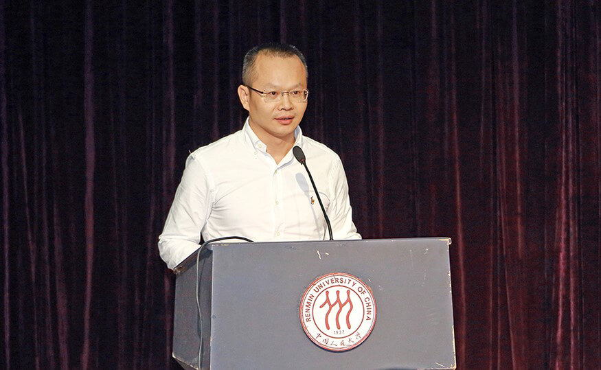 仪式上,孙超代表91级校友发表了深情的感言:作为一名光荣的人大学子,母校不仅让自己学到了丰富的知识、开阔了视野,还塑造了自己的人格、锤炼了自己的精神、赋予了自己强烈的社会责任感,正是在人大求学期间,自己的综合素养得到了全面提升,让自己在踏出校园,走上工作岗位后,心怀梦想,脚踏实地,开拓创新,不断成长。